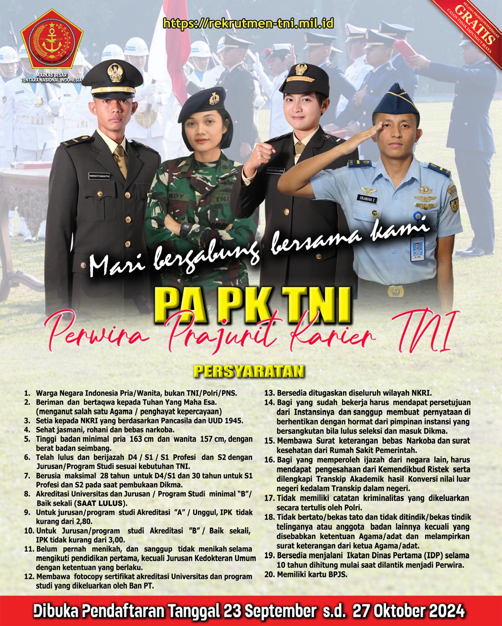 TELAH DIBUKA.!! Penerimaan PA PK TNI TA 2024